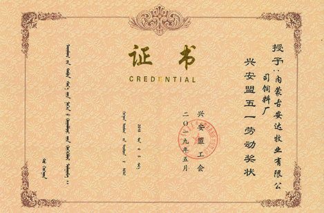 全盟五一勞動獎狀