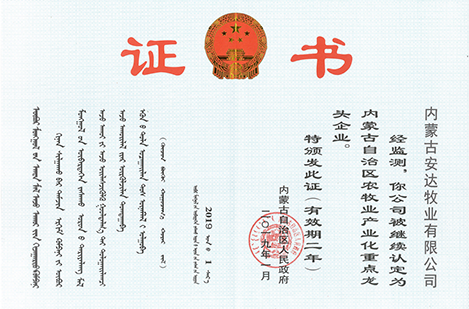 內蒙古自治區農牧業產業化重點龍頭企業(有效期兩年)