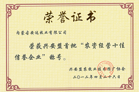 興安盟首批“農資經營十佳信譽企業”